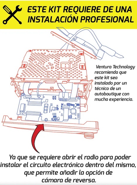 El kit permite instalar una cámara de reversa en las camionetas de Nissan y que la imagen de la cámara sea visualizada en la pantalla del radio original.